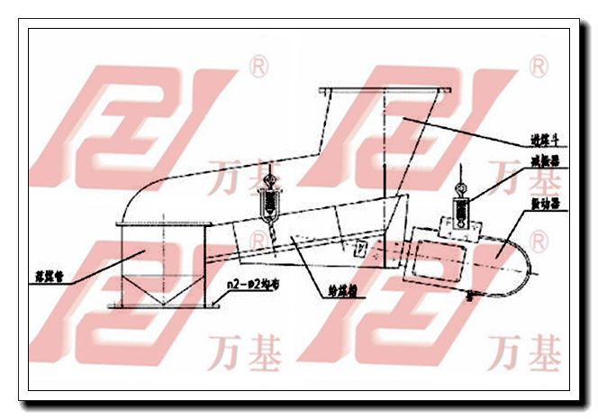 該系列給煤機的給料過(guò)程是利用特制的振動(dòng)電機或兩臺電動(dòng)機帶動(dòng)激振器驅動(dòng)給料槽沿傾斜方向作周期直線(xiàn)往復振動(dòng)來(lái)實(shí)現,當給料槽振動(dòng)的加速度垂直分量大于重力加速度時(shí),槽中的煤被拋起,并按照拋物線(xiàn)的軌跡向前跳躍運動(dòng),拋起和下落在瞬間完成,由于激振源的連續激振,紿煤槽連續振動(dòng),槽中的煤連續向前跳躍,以達到給煤的目的。